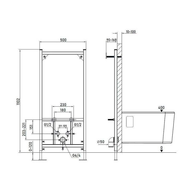 Размер от монтажной стены до чернового обрамления: 90-168мм