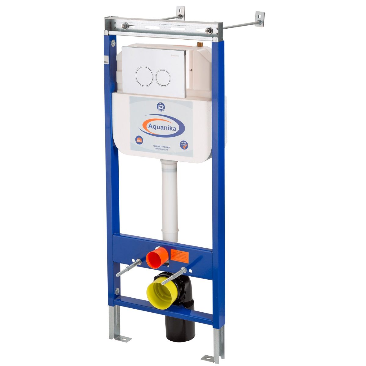 Комплектация «готовый комплект»- все необходимые крепления, патрубки, звукоизолирующая прокладка в комплекте. Вертикальные ребра жесткости в конструкции рамы – дополнительная опора в месте давления керамики на стену. Благодаря им инсталляция становится универсальной и подходит для унитазов любых размеров, включая унитазы с небольшой контактной поверхностью. Нет необходимости докупать дополнительные аксессуары для монтажа таких унитазов. Конструкция из цельного стального профиля 50*25 мм толщиной 2,0 мм позволяет выдерживать требуемую стандартами нагрузку до 400 кг. Цельно-выдувной бесшовный бачок из полиэтилена низкого давления (ПНД) с защитой от конденсата. Комфортное использование благодаря заливному клапану с низким уровнем шума – менее 20 Дб. Металлические детали конструкции инсталляции Aquanika покрыты порошковой эмалью для предотвращения появления коррозии. В сочетании приведённых характеристик мы предоставляем гарантию на данный продукт 10лет.