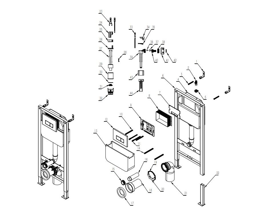 Инсталляция DQ - это система креплений и приспособлений, позволяющих произвести установку подвесного унитаза. Крепится она к стене или за специальным декоративным коробом. На раму устанавливается чаша подвесного унитаза, сливной бачок, различные приспособления и механизмы, вентили и краны, предохранительные клапаны. Также система инсталляции позволяет подключать трубы для подачи и отведения воды. Особенности системы инсталляции DQ: