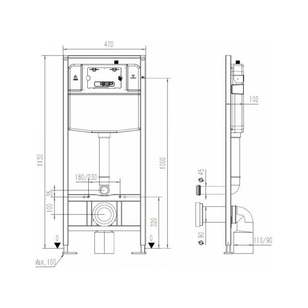 Инсталляция для подвесного унитаза Maretti AC11P4769, без клавиши.