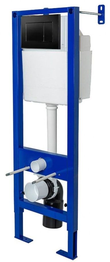 Узкая рама шириной 41 см.Металлический каркас, окрашенный антикоррозийной эмалью.Расчетная нагрузка 400кг. Объём резервуара воды 10 л с тепло- и шумоизоляцией.Подвод воды внутрь резервуара (G1/2 наружная).Объем смыва 3/6 литра с возможностью регулировки.Управление механическое, две кнопки.Межосевое расстояние под шпильки для подвеса унитаза 18 и 23 см. Полный комплект для установки включает в себяшумоизоляционную прокладку и лекало для монтажных отверстий.