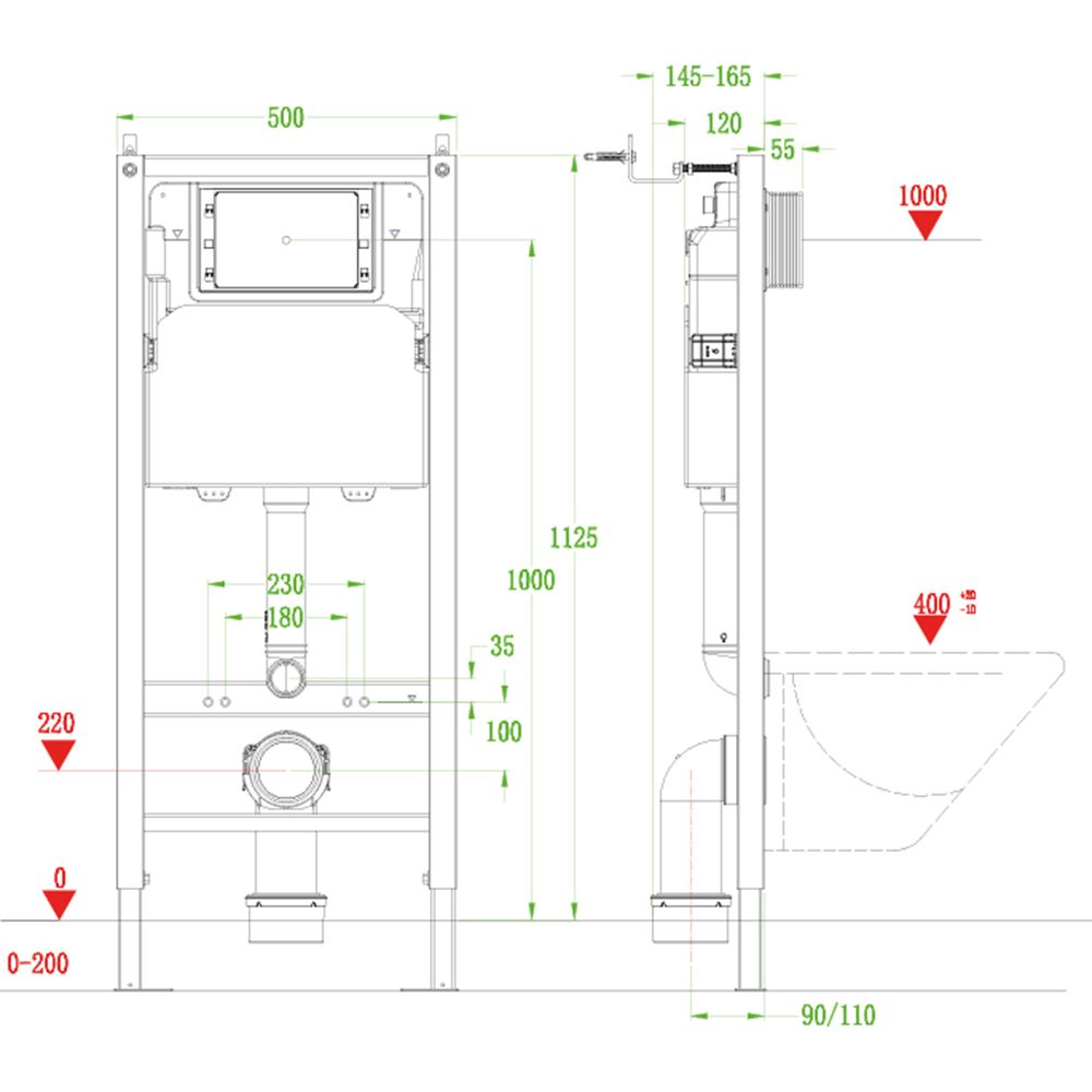 Инсталляция для унитаза VECONI FRAME600, 500x165x1125
