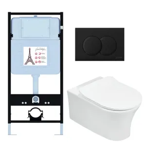 Инсталляция Jacob Delafon E21731RU-BL, с безободковым унитазом Aleo, сиденье с микролифтом, клавиша черная матовая