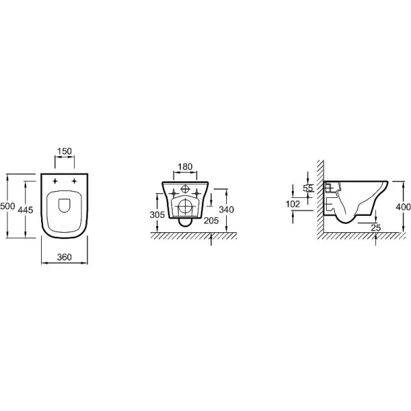 - Монтаж: подвесной, вплотную к стене.