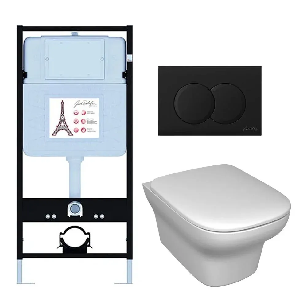 Инсталляция Jacob Delafon E21747RU-BL, с безободковым унитазом Vox, сиденье с микролифтом, клавиша черная матовая
