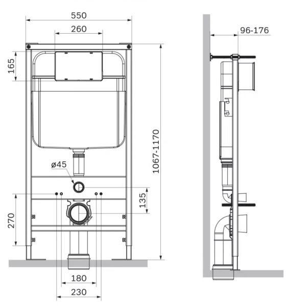 - Ножки монтажной рамы регулируются в пределах от 0 до 13 см – вы сможете зафиксировать унитаз на удобной высоте.