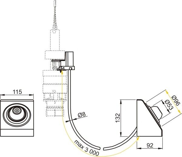 Кнопка пневматического смыва на расстоянии – ножное управление, металл, монтаж: в стенуОбласть применения:
