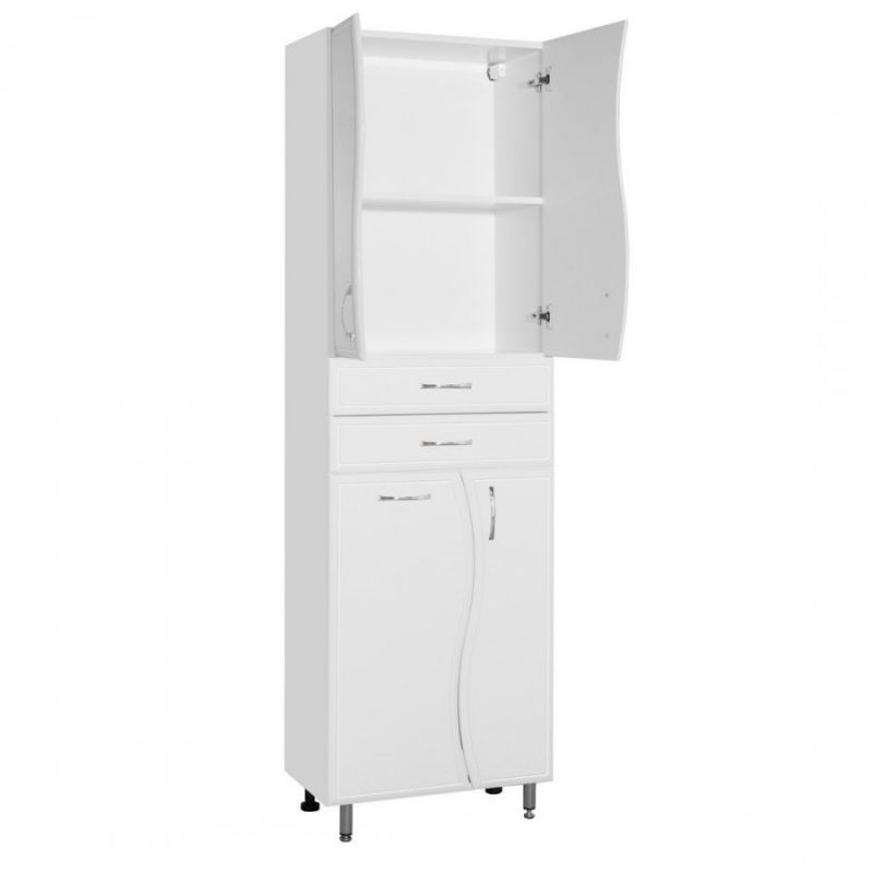 Колонна Style Line Волна ЛС-000010050 белый матовыйШкаф-пенал Style Line Волна 70 ЛС-000010050 - весьма удобный и функциональный шкаф, позволяющий бережно и аккуратно хранить массу различных вещей, и принадлежностей.Конструкция изделия в верхней части имеет две распашные дверцы с полкой, в центре установлены два выдвижных ящика, а снизу - справа распашная дверца с полкой, слева откидной фасад с бельевой корзиной.Визуально шкаф выполнен в базовом белом цвете, из качественного влагостойкого МДФ, покрытого пленкой ПВХ. В силуэте фасадов прослеживается плавная волнистая линия, оправдывающая выбранное название для коллекции.