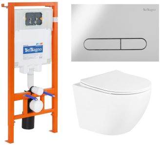 Комплект 3 в 1 BelBagno BB3105CHR/SC/BB002-80/BB005-PR-CHROME унитаз подвесной с сиденьем UNO BB3105CHR/SC система инсталляции для унитазов BB002-80 с кнопкой смыва BB005-PR-CH купить