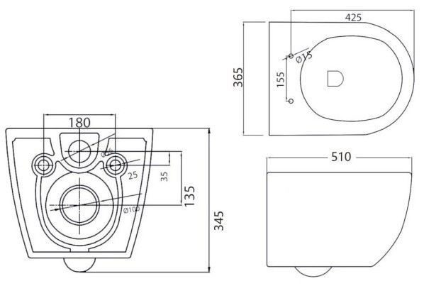 Дополнительная информация: подвесной унитаз с сиденьем и клавиша смыва в комплекте