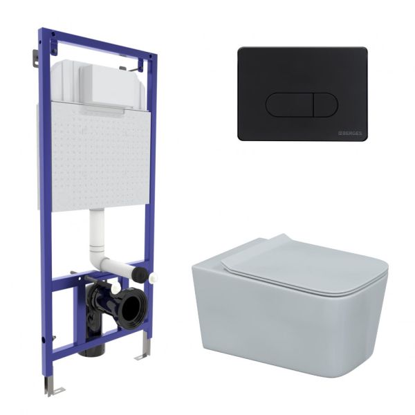 Комплект Berges 043275: инсталляция NOVUM 525 D5 Soft Touch чёрная унитаз Floe Rimless сидение дюропласт Floe Slim SO купить