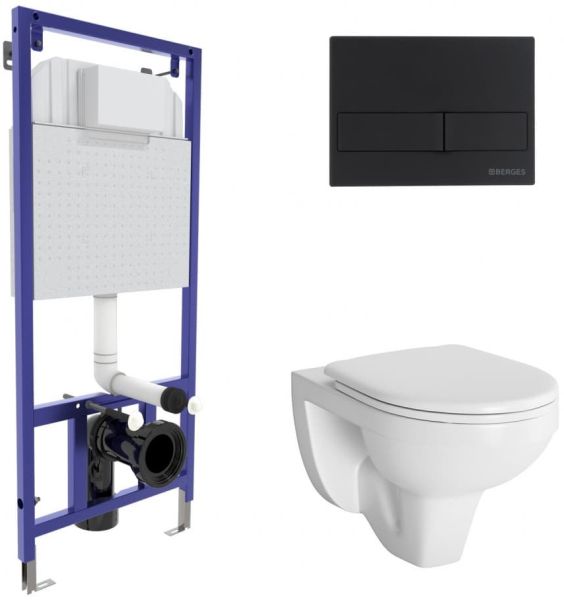 Комплект Berges 4в1 042426: инсталляция NOVUM525 кнопка L5 SoftTouch чёрная унитаз Gamma сиденье микролифт