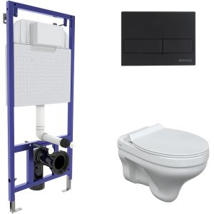 Комплект унитаза с инсталляцией Berges Wasserhaus Novum 042439 с сиденьем Микролифт и Черной клавишей смыва.Характеристики:Унитаз Albit S Rimless:Цвет: белый.