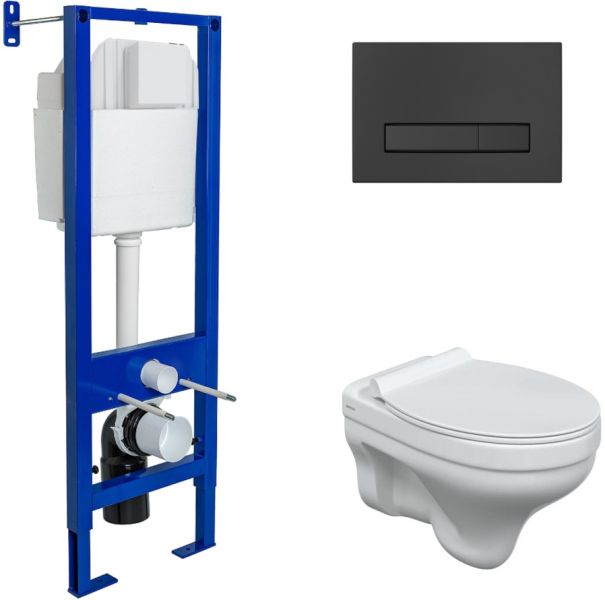 Комплект Berges 4в1 042442: инсталляция ATOM Line 410 кнопка SoftTouch чёрная унитаз Albit S сиденье Top Slim SO