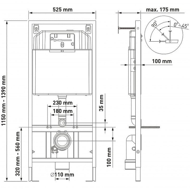 Инсталляция:Монтажная рама:Материал: сталь.