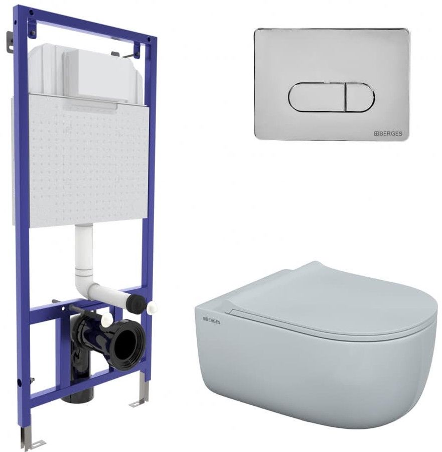 Комплект Berges 4в1 043201: инсталляция NOVUM525 кнопка D3 хром глянец унитаз EGO XL Rimless сиденье Toma Slim SO