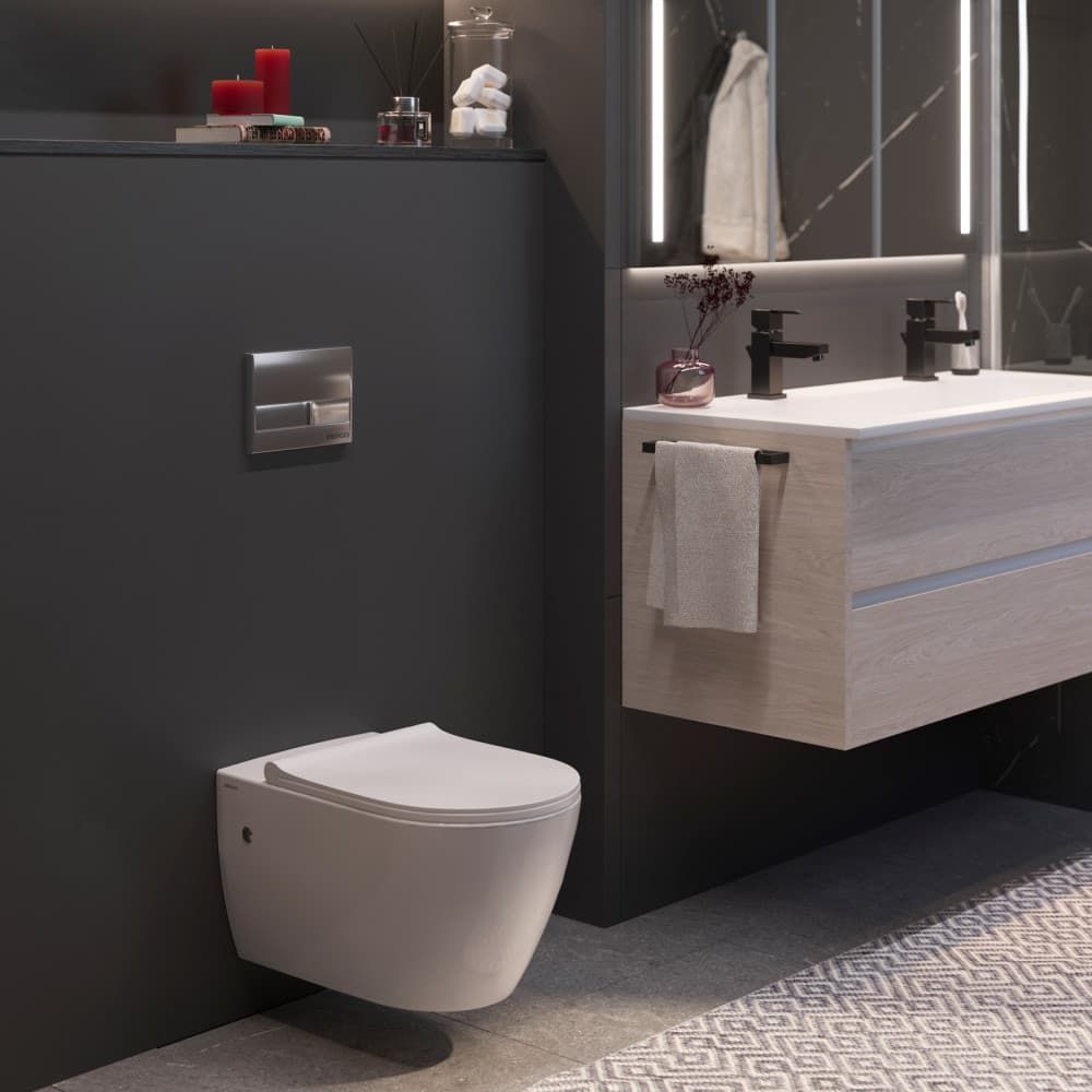Комплект Berges 4в1 043216: инсталляция NOVUM525 кнопка L3 хром глянец унитаз Mascon Rimless сиденье Toma Slim SO купить