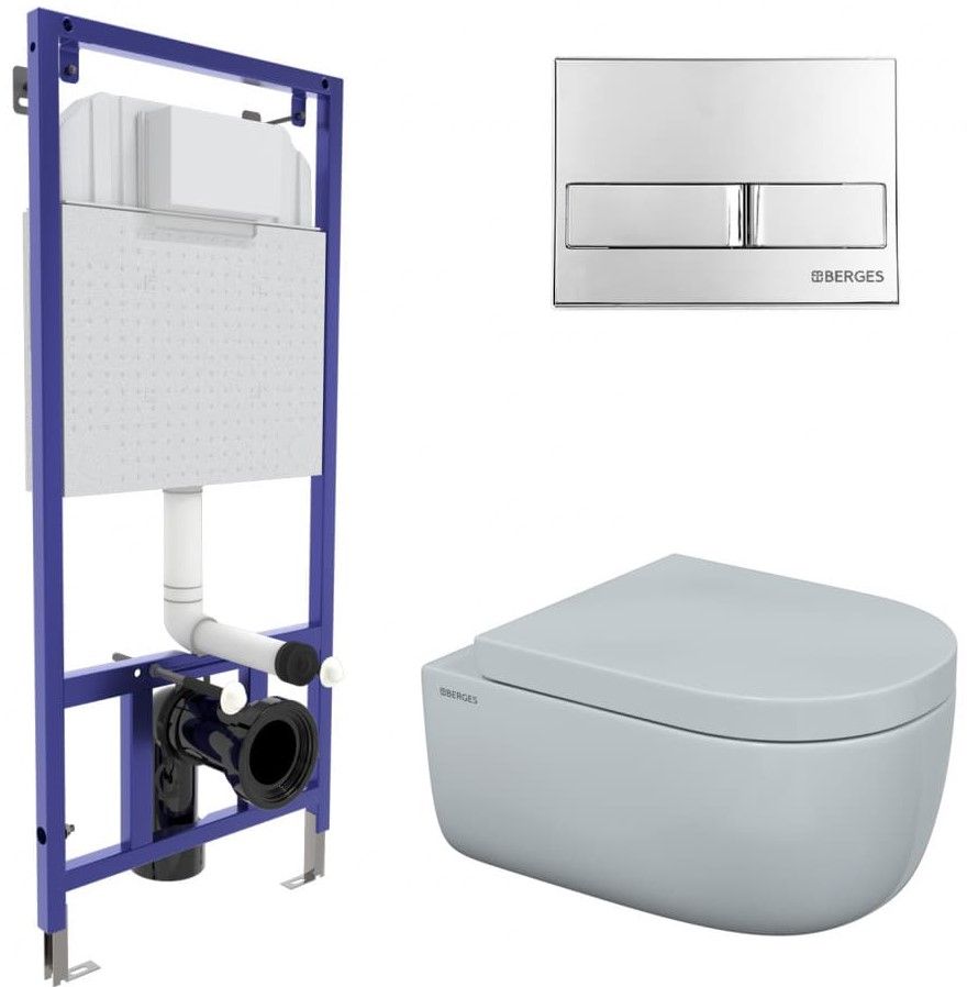 Комплект Berges 4в1 043233: инсталляция NOVUM525 кнопка L3 хром глянец унитаз EGO XL Rimless сиденье Toma SO