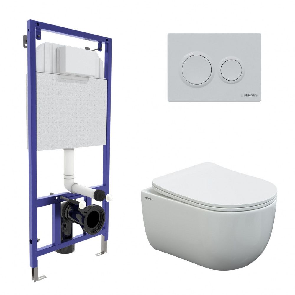 Комплект Berges 4в1 043239: инсталляция NOVUM 525 кнопка О1 белая унитаз VENTAS Rimless сидение дюропласт Ventas Slim SO купить