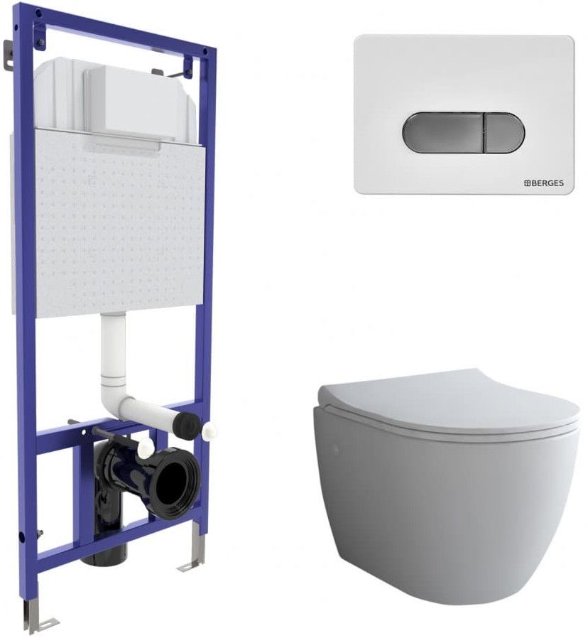 Комплект Berges 4в1 043262: инсталляция NOVUM525 кнопка D7 белая/хром унитаз Okus сиденье Toma Slim SO купить