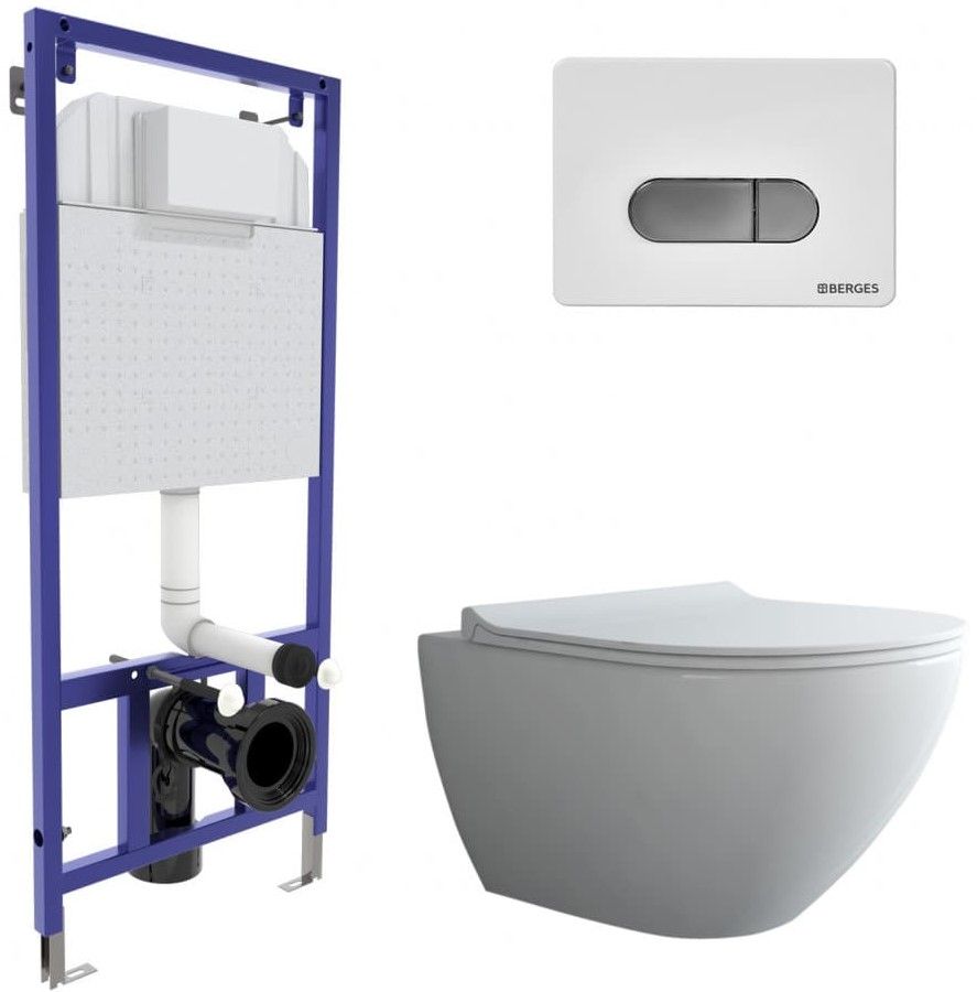 Комплект Berges 4в1 043270: инсталляция NOVUM525 кнопка D7 белая/хром унитаз Puma Rimless сиденье Toma Slim SO купить
