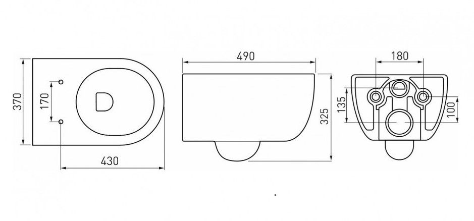 Полный комплект BERGES для монтажа подвесного унитаза. 1. Инсталляция NOVUM525Толщина бачка 80 мм.Межосевое расстояние под крепежные шпильки унитаза 18 и 23 см.Резервуар воды объемом 10 литров с тепло-шумоизоляцией.Уровень шума при давлении 3 бар не превышает 13 дБ.Подвод воды сверху (G1/2 наружная).Объем смыва 3/6 литра с возможностью регулировки. Металлический каркас, окрашенный антикоррозийной эмалью, расчетная нагрузка до 400 кг.Ножки регулировки высоты из оцинкованной стали. Возможность установки в угол. 2. кнопка D5 SoftTouch чернаяABS-пластик 3. унитаз EGO Rimless 49 см,безободковая система смыва, антибактериальное покрытиеэкономия воды, скрытый крепеж 4. сиденье дюропласт Toma Slim SOмикролифт, быстросъем. Все крепежи для установки в комплекте