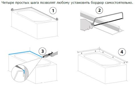 - набор белых стыковочных углов (наружный, внешний) – 2 штБордюр для ванныОбеспечивает дополнительную герметизацию между бортами ванны и стеной.