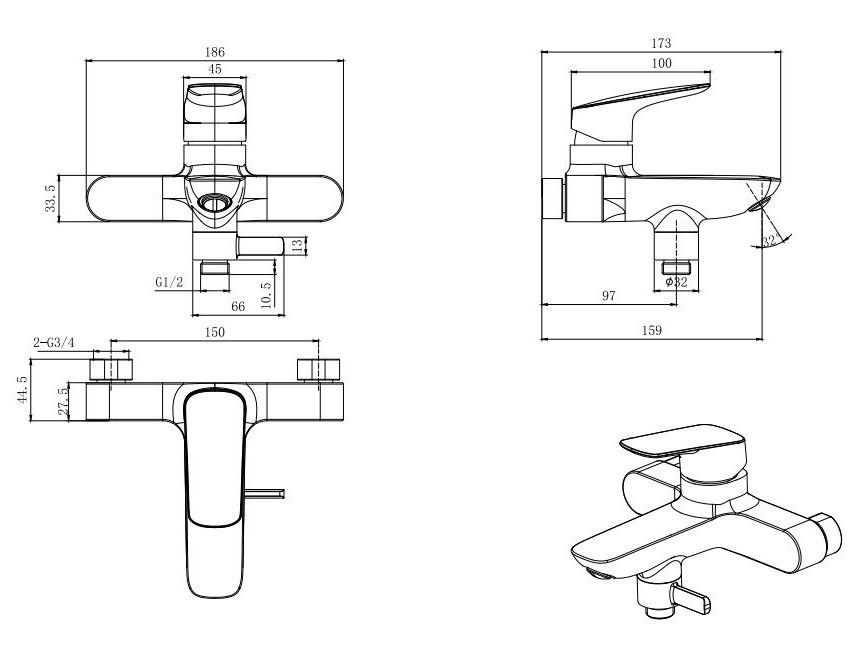 В комплекте: душевая штанга; держатель душевой лейки; душевая лейка ; душевой шланг из ПВХ ; мыльница; монтажный комплект