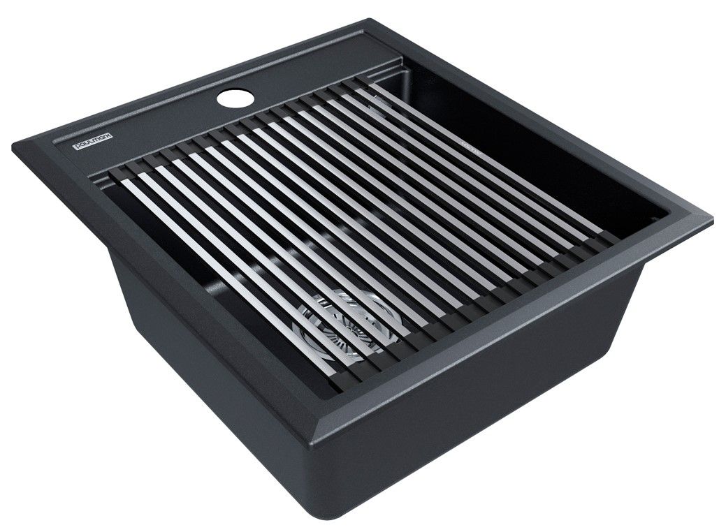 Комплект мойка STEPIA 45 + ролл-мат STEP, PM114651-BLM+R375-BS Стильный и многофункциональный комплект мойки из композитного материала на основе гранита и ролл-мата из высококачественной нержавеющей стали для создания комфортной рабочей зоны на вашей кухне.Мойка STEPIA 45 изготовлена из IT-GRANIT – композитного материала на основе гранита, благодаря чему мойка не потеряет свой первоначальный цвет за многие годы использования даже при длительном воздействии солнечных лучей. Материал мойки устойчив к сколам, царапинам и деформациям. На горизонтальных гранях чаши мойки предусмотрены специальные выступы-ступеньки, которые позволяют использовать такие аксессуары, как ролл-маты, доски, коландеры и пр. для создания дополнительной рабочей поверхности на кухне. Дно чаши мойки имеет 4 грани, направленных к сливу под индивидуальным градусом для максимально быстрого ухода воды.