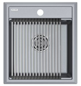 Комплект мойка STEPIA 45 + ролл-мат STEP, PM114651-GRM+R375-BSСтильный и многофункциональный комплект мойки из композитного материала на основе гранита и ролл-мата из высококачественной нержавеющей стали для создания комфортной рабочей зоны на вашей кухне.Мойка STEPIA 45 изготовлена из IT-GRANIT – композитного материала на основе гранита, благодаря чему мойка не потеряет свой первоначальный цвет за многие годы использования даже при длительном воздействии солнечных лучей. Материал мойки устойчив к сколам, царапинам и деформациям. На горизонтальных гранях чаши мойки предусмотрены специальные выступы-ступеньки, которые позволяют использовать такие аксессуары, как ролл-маты, доски, коландеры и пр. для создания дополнительной рабочей поверхности на кухне. Дно чаши мойки имеет 4 грани, направленных к сливу под индивидуальным градусом для максимально быстрого ухода воды.