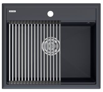 Комплект мойка STEPIA 60 + ролл-мат STEP, PM115951-AN+R375-BS.Стильный и многофункциональный комплект мойки из композитного материала на основе гранита и ролл-мата из высококачественной нержавеющей стали для создания комфортной рабочей зоны на вашей кухне.Мойка STEPIA 60 изготовлена из IT-GRANIT – композитного материала на основе гранита, благодаря чему мойка не потеряет свой первоначальный цвет за многие годы использования даже при длительном воздействии солнечных лучей. Материал мойки устойчив к сколам, царапинам и деформациям. На горизонтальных гранях чаши мойки предусмотрены специальные выступы-ступеньки, которые позволяют использовать такие аксессуары, как ролл-маты, доски, коландеры и пр. для создания дополнительной рабочей поверхности на кухне. Дно чаши мойки имеет 4 грани, направленных к сливу под индивидуальным градусом для максимально быстрого ухода воды.