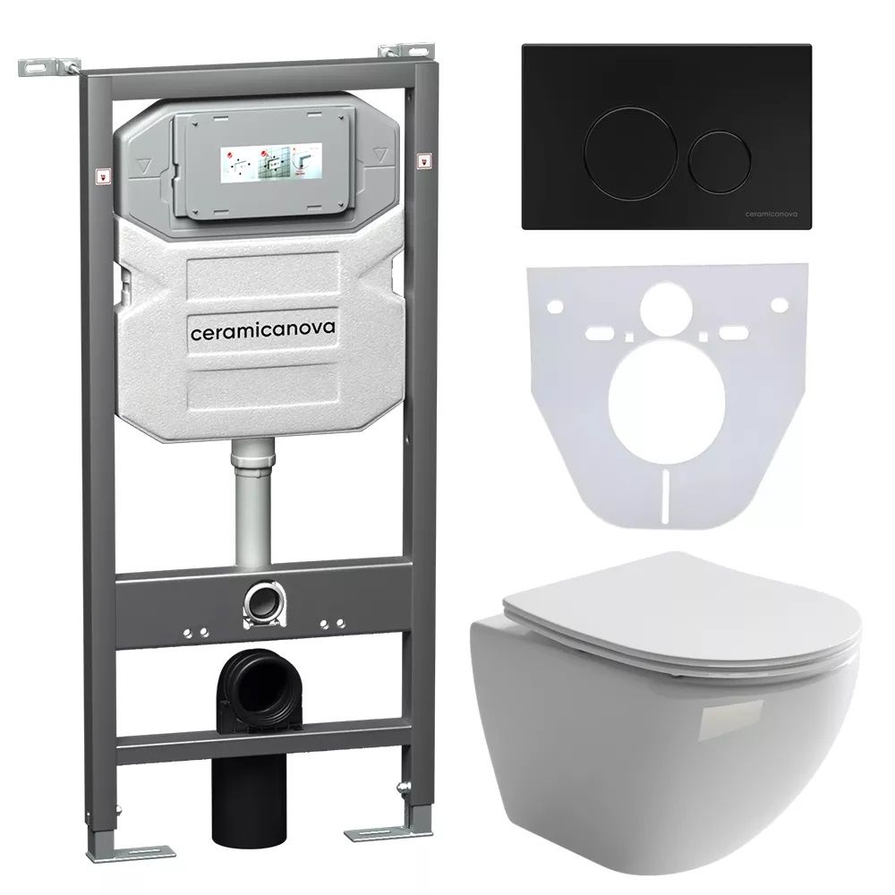 Комплект с инсталляцией Ceramica Nova CN4002_1001B_1000 унитаз Metropol CN4002 крышка-сиденье с микролифтом и инсталляция Envision CN1001B с чёрной матовой кнопкой смыва Round купить