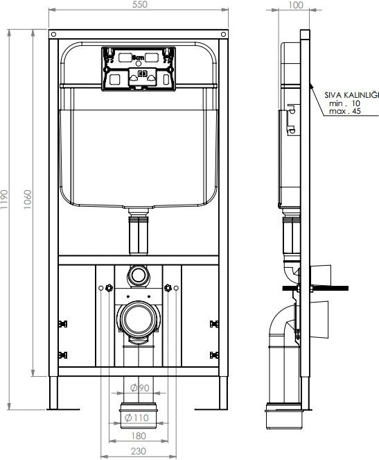 • Бачок скрытого монтажа с фронтальным механическим управлением.