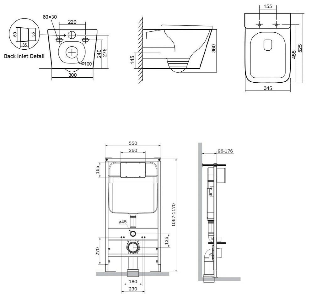 • Расстояние между болтами для монтажа унитаза: 18 см.
