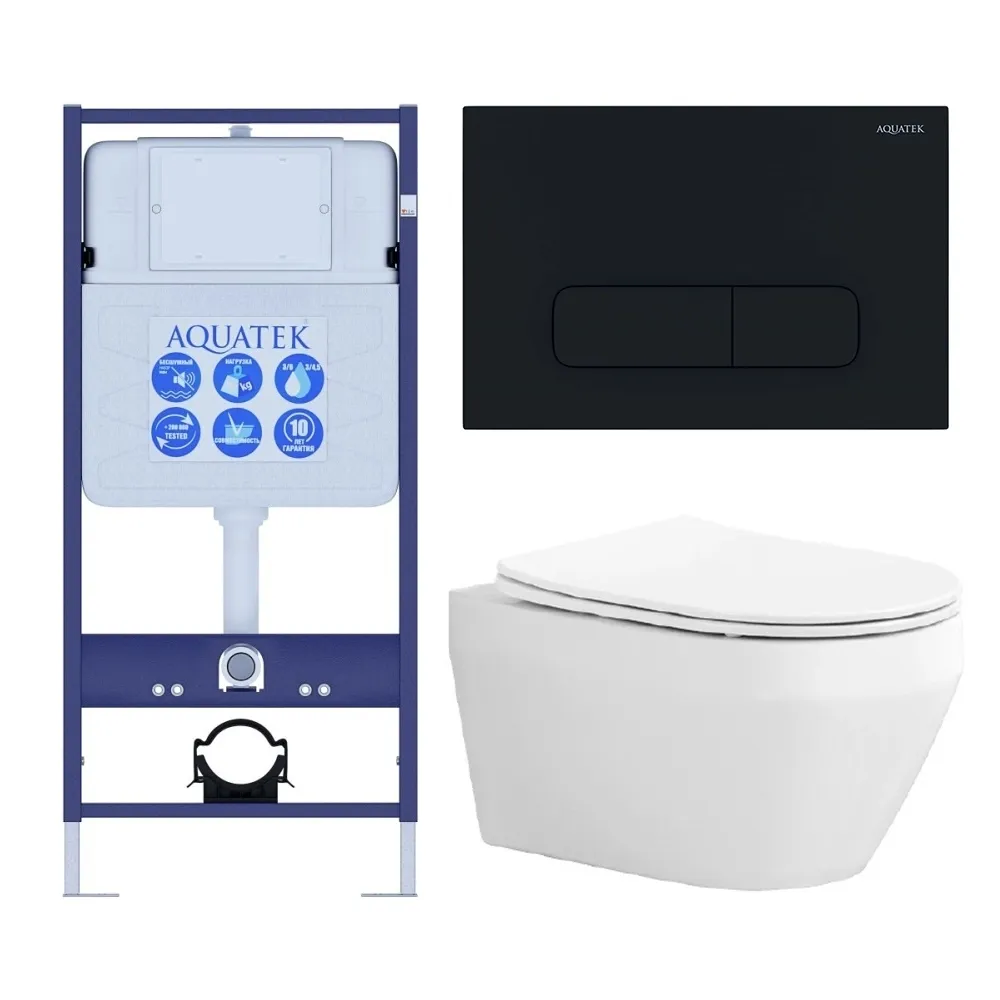 Комплект SET AQUATEK ЛЕЯ cm-017 4в1 унитаз с инсталляцией кнопкой и сиденьем микролифт купить