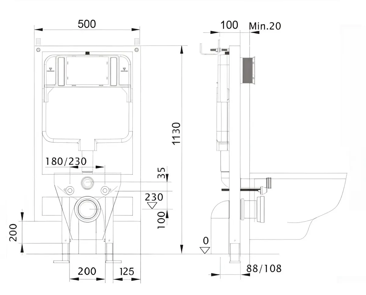 Монтажная рама совместима практически с любыми моделями унитазов благодаря стандартному межосевому расстоянию под крепежные шпильки для санкерамики-18/23 см. Рама крепится в капитальную стену и пол.