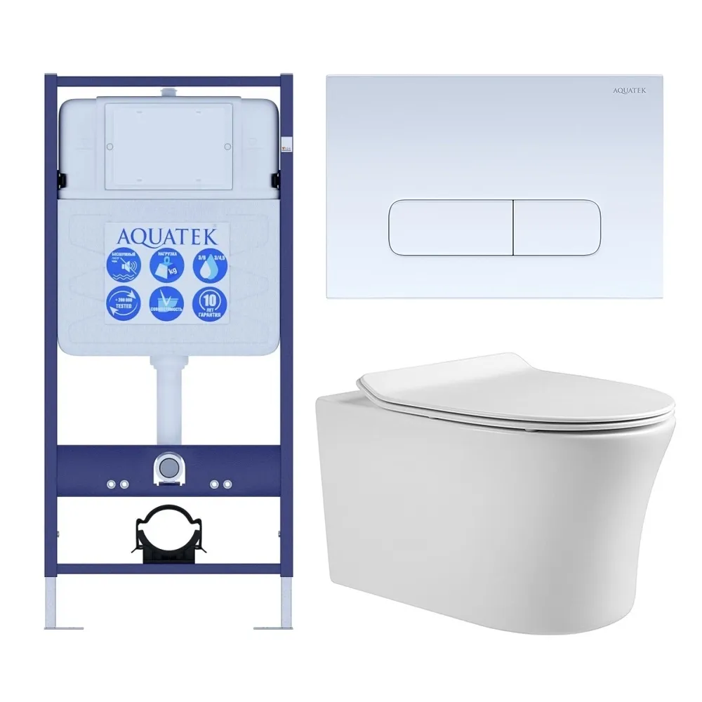 Комплект SET AQUATEK НИКА-013 4в1 унитаз с инсталляцией кнопкой и сиденьем микролифт купить