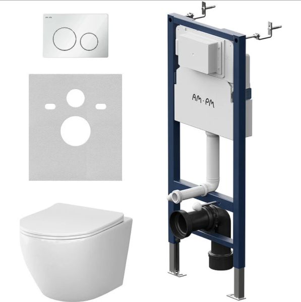 Комплект унитаза с инсталляцией AM.PM IS90201.801900 с сиденьем Микролифт и клавишей смыва белой