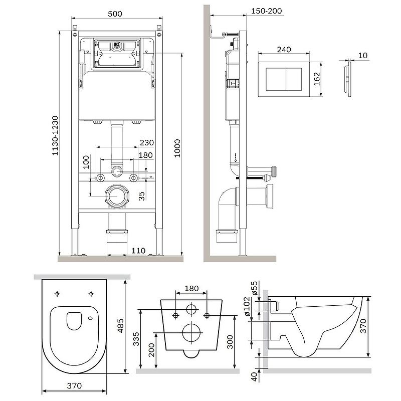 Комплект унитаза с инсталляцией AM.PM Like IS90238.801900 с сиденьем Микролифт и Черной матовой клавишей смываКомплект унитаза с инсталляцией AM.PM Like IS90238.801900.