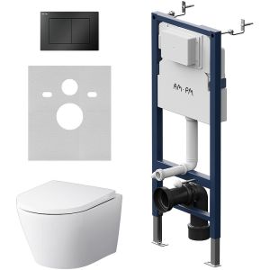 Комплект унитаза с инсталляцией AM.PM Sense FlashClean IS90238.741701 с сиденьем Микролифт и Черной матовой клавишей смыва