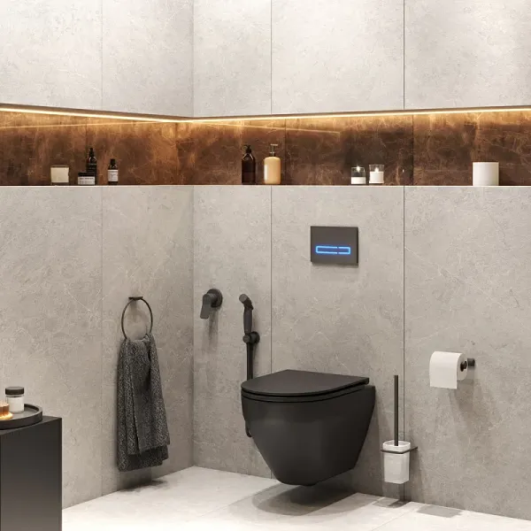 Комплект унитаза с инсталляцией AM.PM Spirit CK70GH Черный матовый с сиденьем Микролифт с Черной глянцевой клавишей смыва с гигиеническим душем и аксессуарами для ванной комнаты