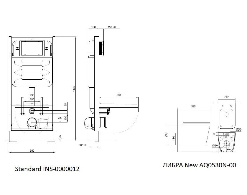Комплект унитаза с инсталляцией Aquatek Либра SET AQUATEK ЛИБРА N рама Standard INS-0000012 унитаз Либра New AQ0530N-00 с тонким сиденьем soft-close