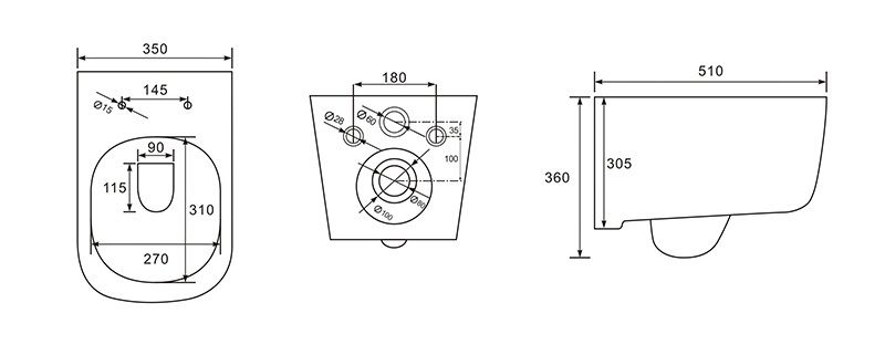 • Совместима со всеми видами подвесных унитазов