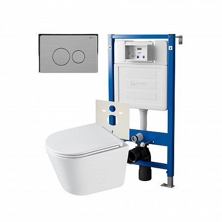 Комплект унитаза с инсталляцией Point Элемент PN48305SB с сиденьем МикролифтСет: Система инсталляции Point Элемент для подвесного унитаза PN45120 + Клавиша смыва для инсталляции Point Виктория, нержавеющая сталь, сталь брашированная, PN44061SB + Унитаз подвесной Point Венера безободковый, белый, сиденье дюропласт микролифт быстросъемное PN41071