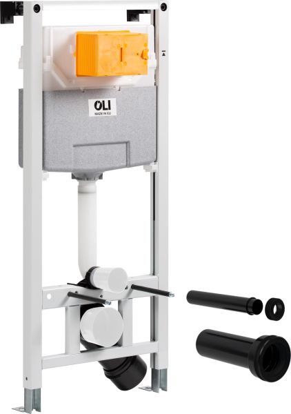 Инсталляция для унитаза. Рама инсталляции изготовлена из стали и покрыта прочной порошковой антикоррозионной краской. Отличительная особенность данной системы инсталляции - возможность регулировки по высоте на 20 см с помощью ножек из оцинкованной стали. Бачок скрытого монтажа выполнен из полимерного материала HDPE, что соответствует ведущим Европейским стандартам. Для защиты от конденсата, а также обеспечения бесшумной работы, резервуар скрытого монтажа обшит пенопластом.