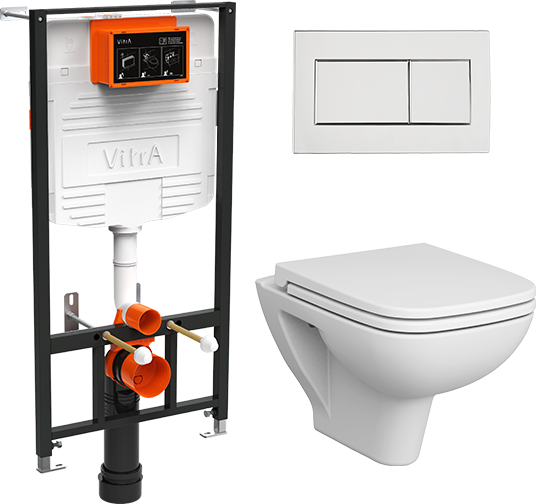 Комплект VitrA S20 9004B003-7207 Унитаз подвесной безободковый, с микролифтом + Система инсталляция + Кнопка смыва купить