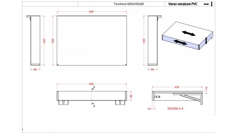 Консоль подвесная Cezares 60x8 Bianco Opaco Tavolone 41784