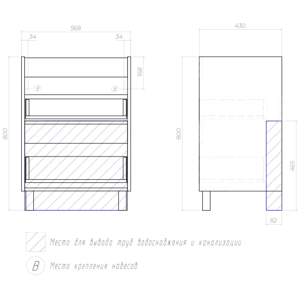 Корпус тумбы под раковину 265 Neo, Glem, Finlay, Cross 600-0-2 (Como)