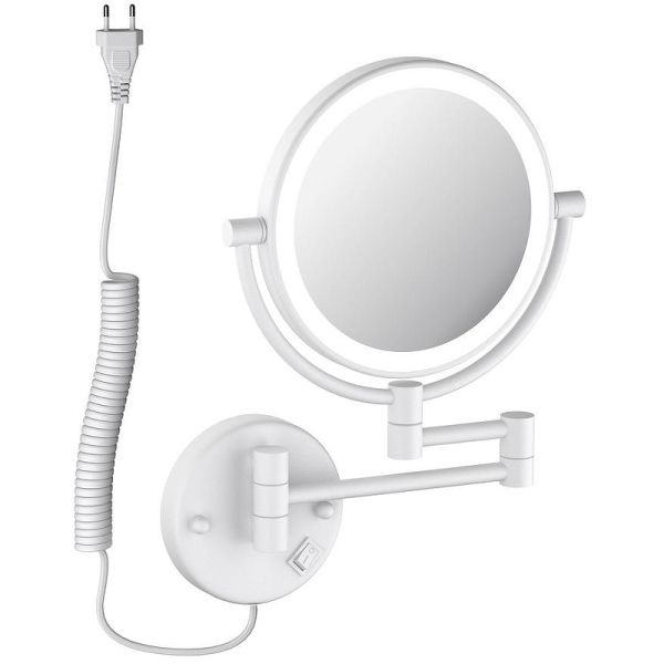 Косметическое зеркало Timo Saona 13376/16, 25 см, с подсветкой, 5х увеличение, цвет белый матовый