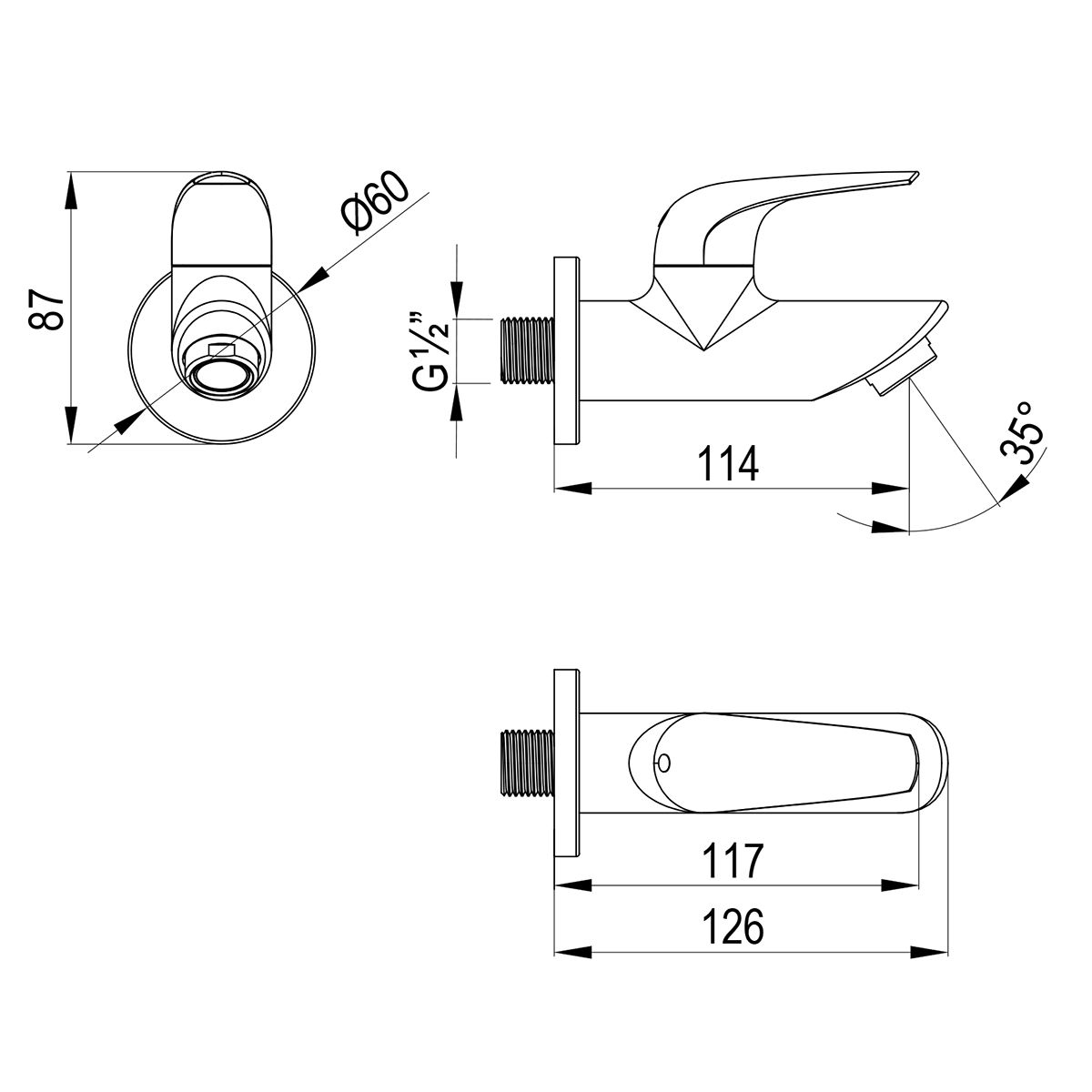 - Диаметр подсоединения к водопроводу – ½”